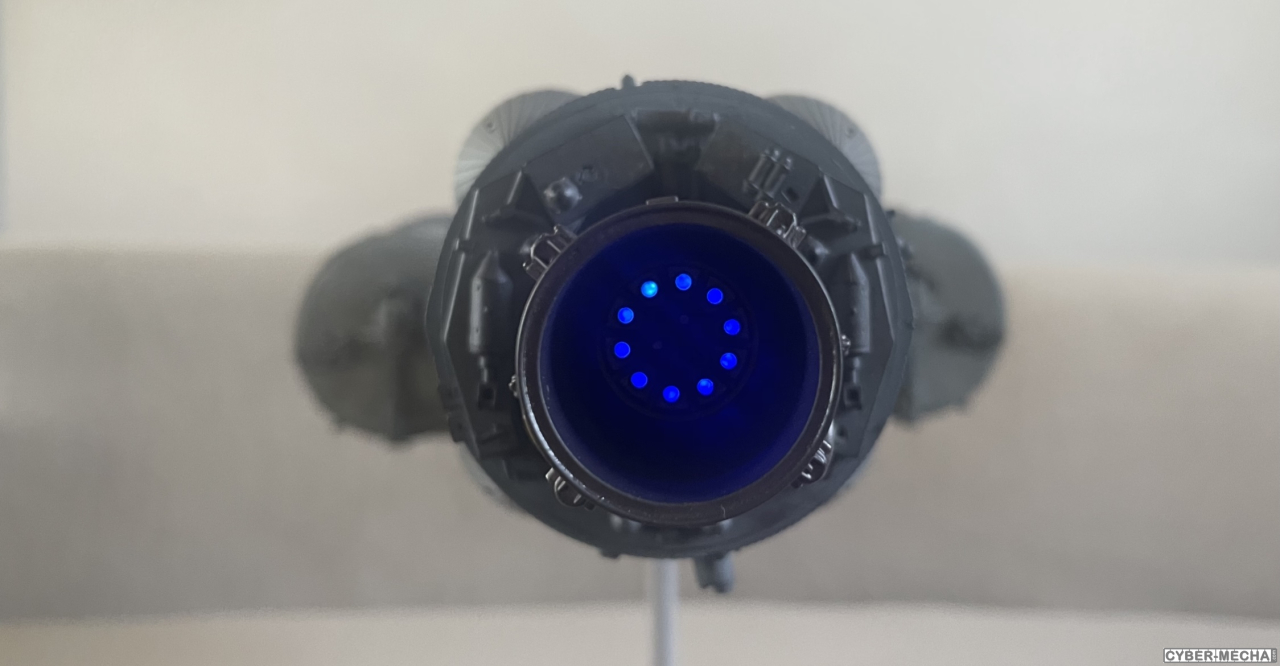 J'ai installé de la lumière dans le réacteur, 2 leds bougies alimentées par des piles boutons, c'est vraiment pour le fun, car cela se voit à peine.