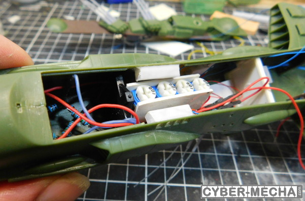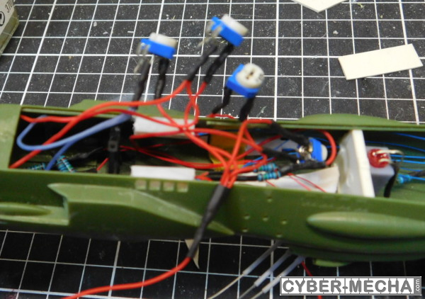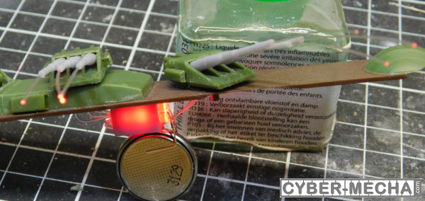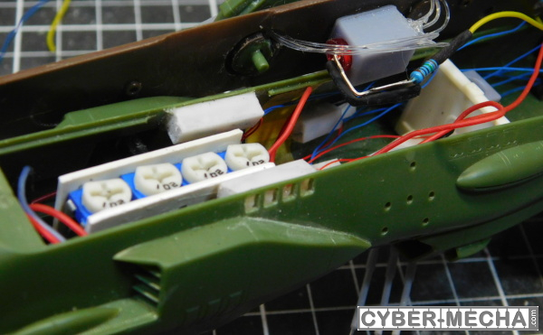 Il était possible d'éclairer les tourelles, de faire monter et descendre les cannons, de faire tourner les tourelles. Mais je n'ai pas trouver de solution technique viable à cette échelle pour conjuguer les trois. Donc je suis resté sur un éclairage "simple".