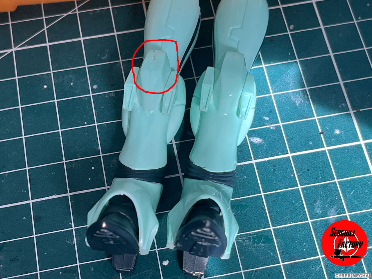 la genouillère qui se fend quand je retire le masquage de la partie foncée plus bas...