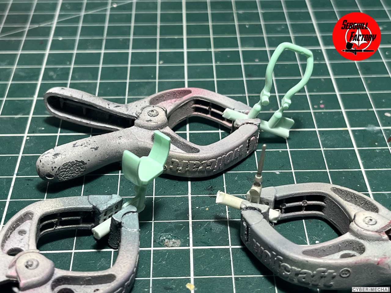 puis montage des bras sur les avant bras et mains... encore du masquage en vue...
