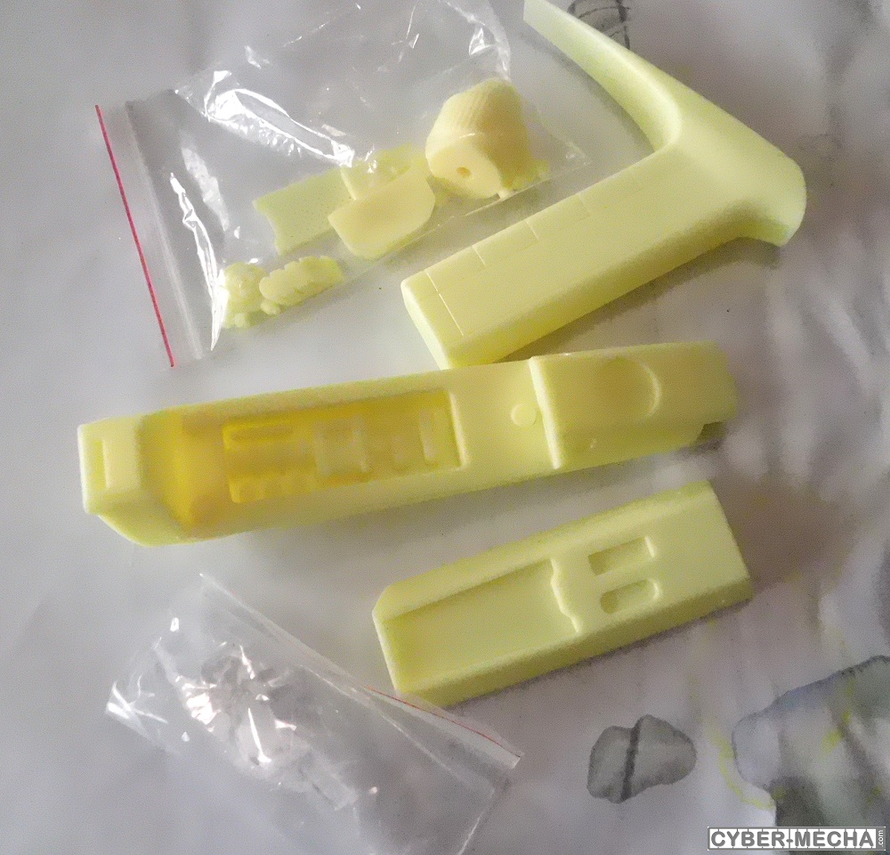 Les pieces telles que je les ai reçu, cette fois-ci, il s'agit d'un tirage creux, l'avantage, c'est moins cher, le desavantage, c'est que certaines pieces peuvent etre deformées , pas le cas ici car l'Imperial Factory m'avait proposé de faire les parois plus epaisses pour eviter les deformations.