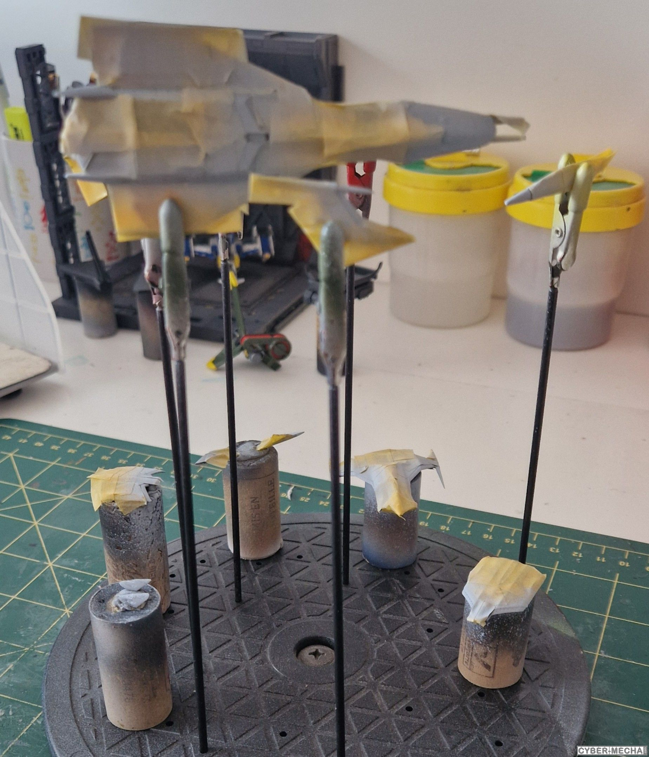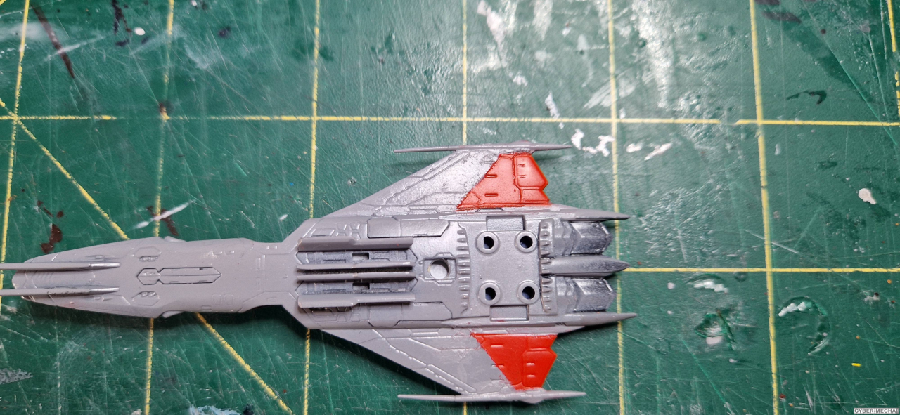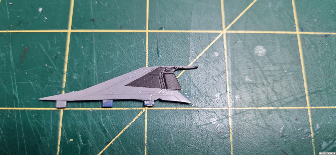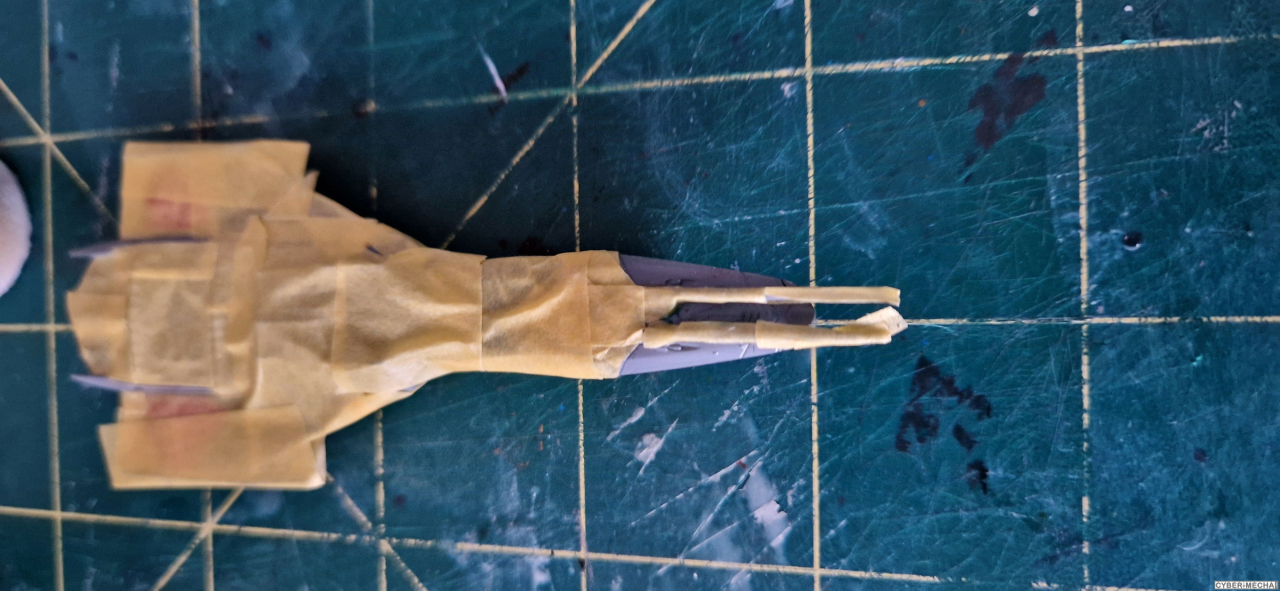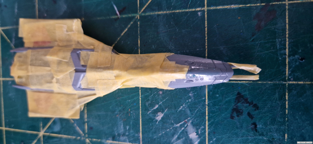 j'ai utilisé le masquage liquide Vallejo pour les verrières et le dessous entre les 2 lasers et pour les 2 canons latéraux en remplacement de mon maskcolle humbrol terminé et ça se passe et se retire nickel.