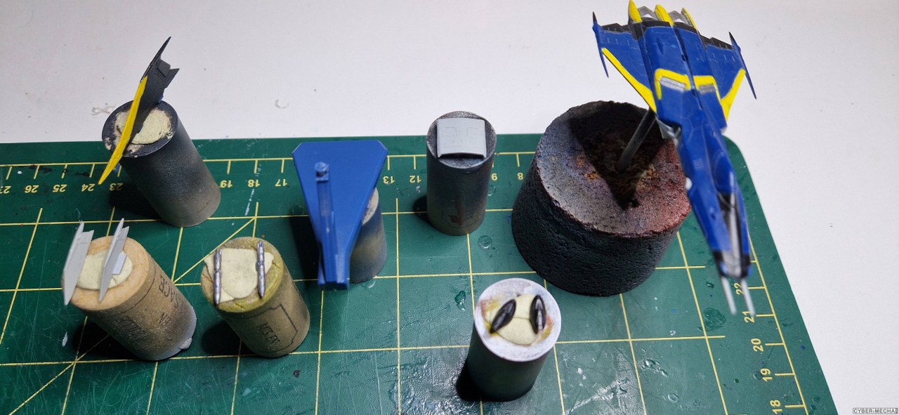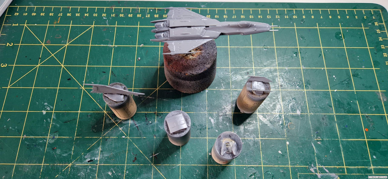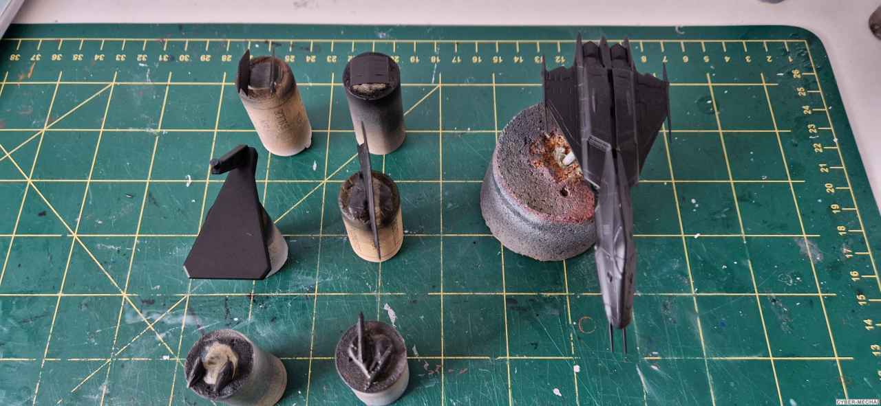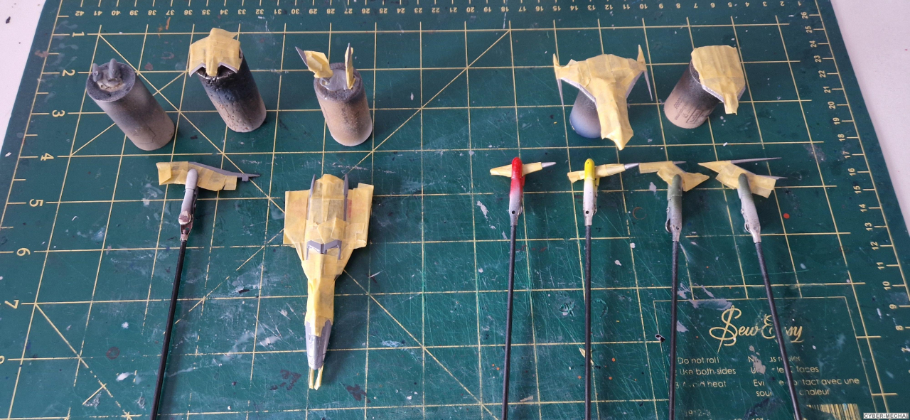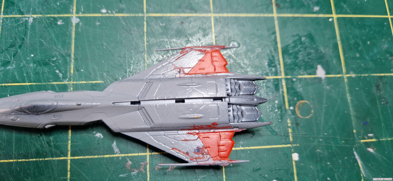 j'ai utilisé le masquage liquide Vallejo pour les verrières et le dessous entre les 2 lasers et pour les 2 canons latéraux en remplacement de mon maskcolle humbrol terminé et ça se passe et se retire nickel.