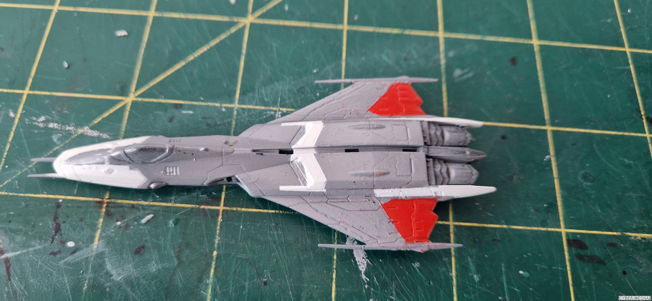 Les triangles rouges sur les ailes la peinture est passée sous le masquage donc passage format typex avec le gris clair