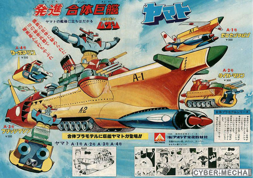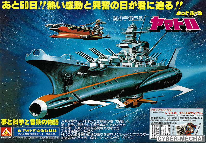 Et ce n'est pas un hasard s'il ressemble bien plus au Yamato de l'anime que le Gattai Kyokan ou le Red Cosmic (que l'on aperçoit d'ailleurs tous deux en arrière-plan sur l'illustration de la boîte). 1978 fut l'année des adieux au Yamato, Aoshima profitant opportunément de la sortie du second film.