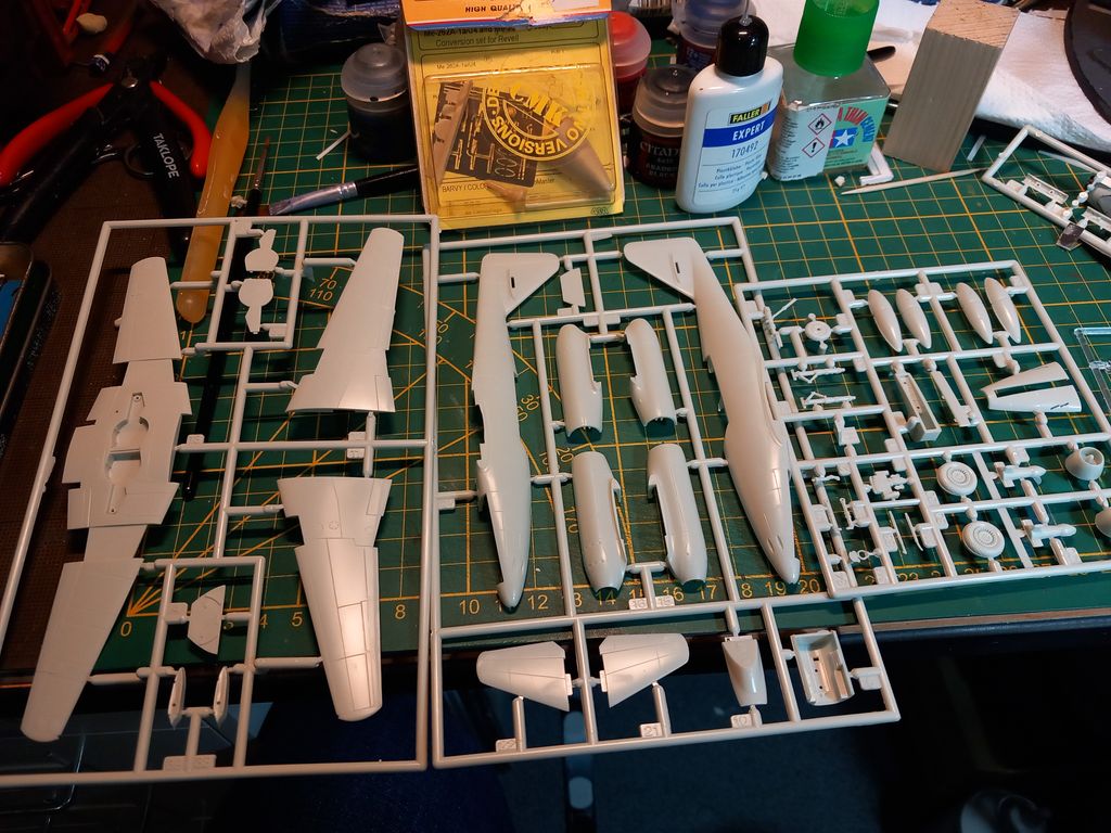 De retour ici avec un petit projet avion au 1/72, un me 262 avec une conversion en U4 (équipé d'un canon de 50). Je pars sur la base du kit Revell, kit de conversion résine de la marque CMK.