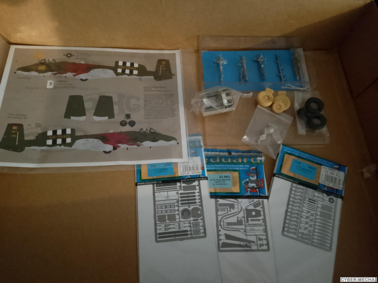 A-10 Trumpeter 1/32 + planche D-Days + Pilote résine + Cockpit résine + roues résine + trains métal + tuyères résine (absentes sur la photos) 3 planches de Photodec Eduard = 120€